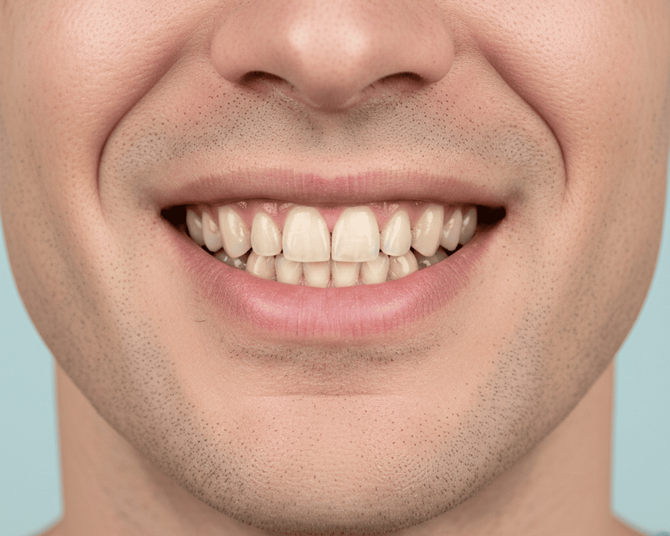 Как распознать? Желтизна неоднородна: заметнее в местах, которые сложнее чистить — у шеек зубов, в межзубных промежутках. Поверхность может казаться шероховатой. Часто после профессиональной чистки цвет кардинально улучшается.