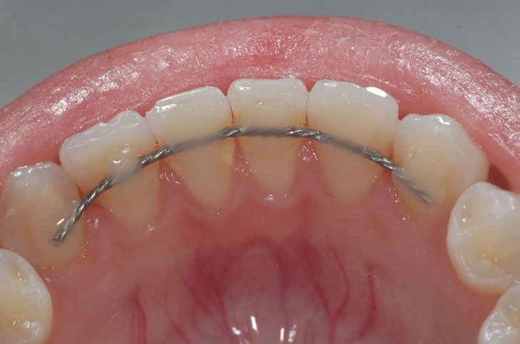 - Что это: Тонкая металлическая дуга (или витая проволочка), которая фиксируется специальным стоматологическим клеем на внутренней (язычной) стороне передних зубов. Обычно — от клыка до клыка. Вы ее не видите в зеркале, и окружающие ее тоже не замечают.